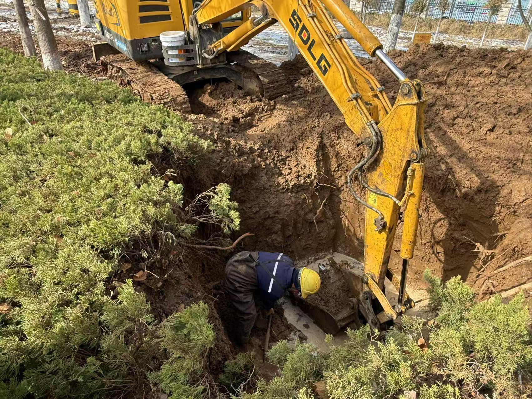 3月2日晚,嬴城水務巡察人員發(fā)現萊城大道重工東門主管道地段存在路面積水情況,經現場查看,初步確認管線凍裂漏水。夜晚持續(xù)降雪,氣溫降至零下4°C,為避免路面積水結冰影響周邊企業(yè)居民生產生活用水,維修人員決定連夜掘地搶修。冰冷刺骨的泥水中,維修人員持續(xù)奮戰(zhàn)十余個小時將漏水管線修復完畢,跑出了雪夜搶修的“水發(fā)速度”。